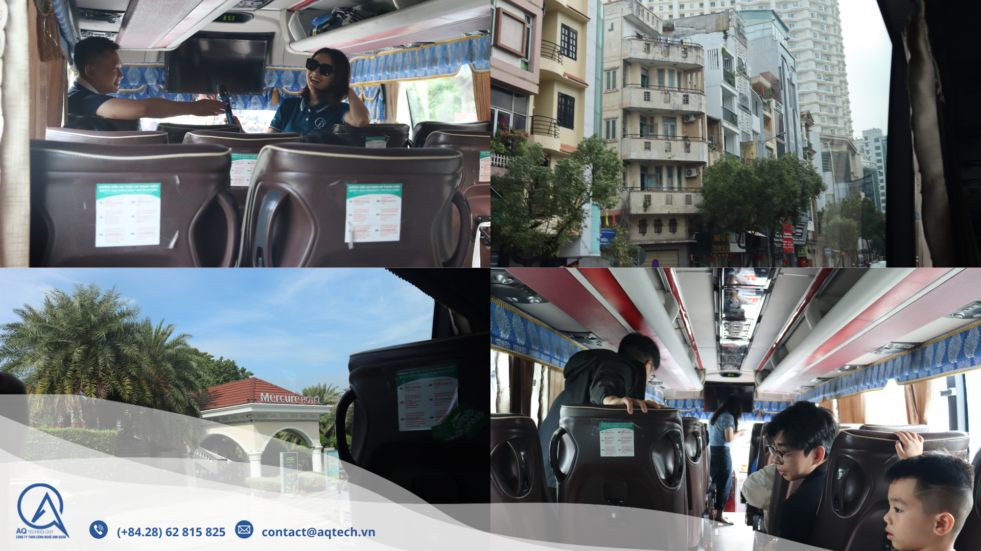 Hình ảnh: Đoàn khởi hành – Các hoạt động giao lưu, mini game, và tiếng cười trên xe.