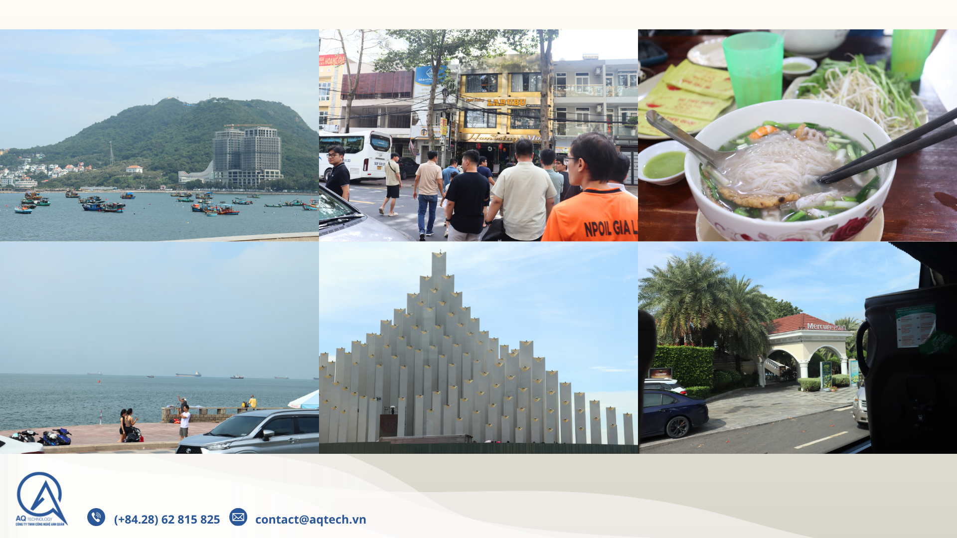 Hình ảnh: Các hoạt động buổi sáng của AQTech – ăn sáng, thưởng thức cà phê, tham quan và dạo biển tại Vũng Tàu.