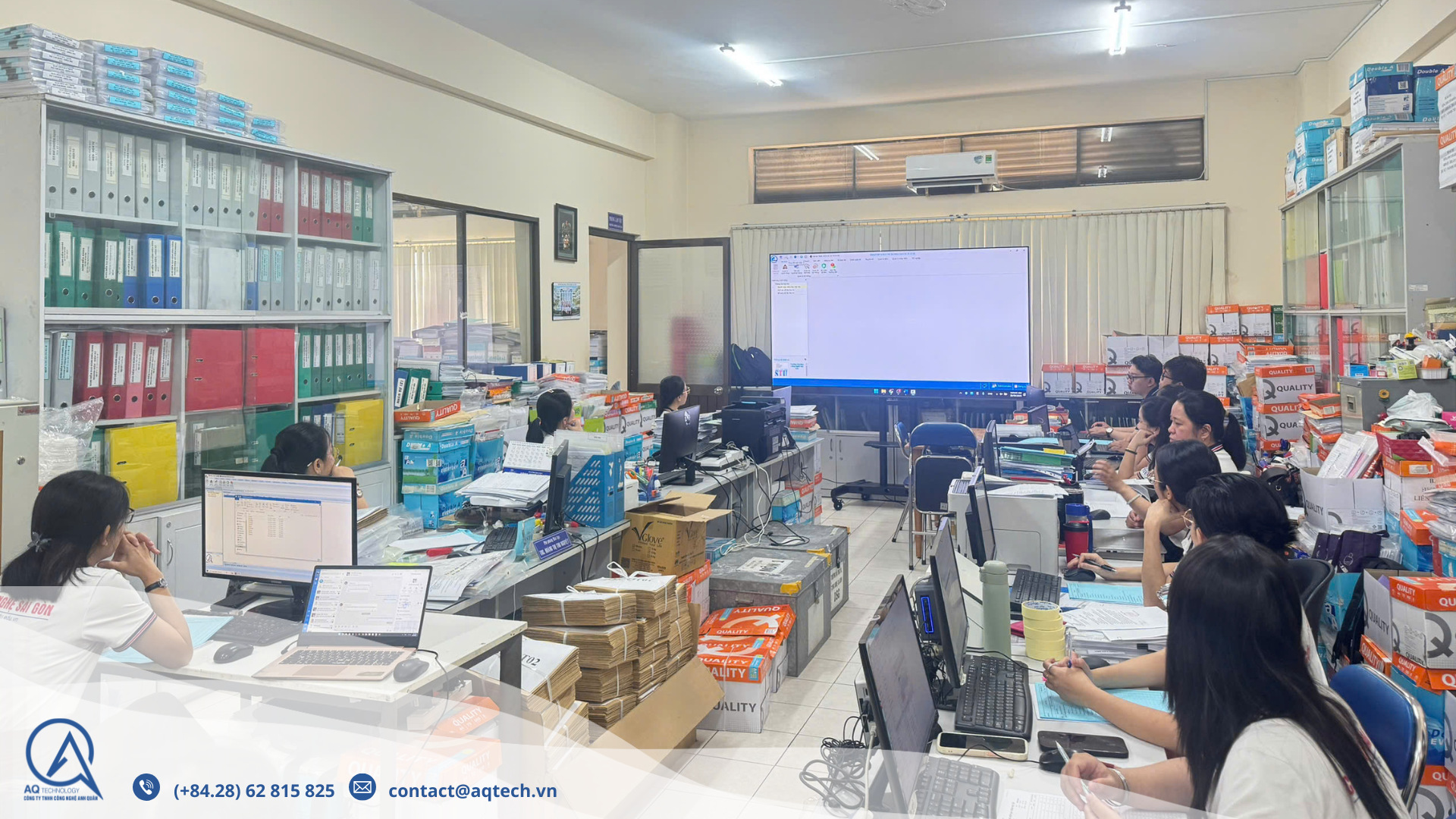 Tại phòng họp của nhà trường, buổi tập huấn và triển khai hệ thống đã diễn ra trong không khí nghiêm túc nhưng cũng đầy hứng khởi. Đông đảo cán bộ, giảng viên các phòng ban chuyên môn đã có mặt, trực tiếp tham gia lắng nghe, thực hành và trao đổi cùng đội ngũ chuyên gia đến từ AQTech.